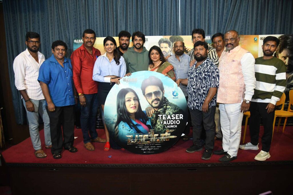 ತೆಲುಗು , ತಮಿಳು, ಮಲೆಯಾಳಂ ಹಾಗೂ ಹಿಂದಿ ಭಾಷೆಗಳಲ್ಲಿ ಅಭಿನಯಿಸಿರುವ ಸತ್ಯಜಿತ್ ಶಬ್ಬೀರ್ ನಿರ್ಮಿಸಿ, ನಿರ್ದೇಶಿಸಿರುವ ಹಾಗೂ ಧರ್ಮ ಕೀರ್ತಿರಾಜ್ ನಾಯಕನಾಗಿ ನಟಿಸಿರುವ “ಬುಲೆಟ್” ಚಿತ್ರದ ಟೀಸರ್ ಹಾಗೂ ಹಾಡುಗಳ ಬಿಡುಗಡೆ ಸಮಾರಂಭ ಇತ್ತೀಚೆಗೆ ನೆರವೇರಿತು. ಬಹುಜನ ದಲಿತ ಸಂಘರ್ಷ ಸಮಿತಿ ರಾಜ್ಯಾಧ್ಯಕ್ಷರಾದ ಆರ್ ಎಂ ಎನ್ ರಮೇಶ್ ಹಾಗೂ ನಟಿ ನಿಖಿತ ಸ್ವಾಮಿ ಮುಖ್ಯ ಅತಿಥಿಗಳಾಗಿ ಆಗಮಿಸಿ ಟೀಸರ್ ಹಾಗೂ ಹಾಡುಗಳನ್ನು ಅನಾವರಣ ಮಾಡಿ ಚಿತ್ರತಂಡಕ್ಕೆ ಶುಭ ಕೋರಿದರು. ನಂತರ ಚಿತ್ರತಂಡದ ಸದಸ್ಯರು ಮಾತನಾಡಿದರು.