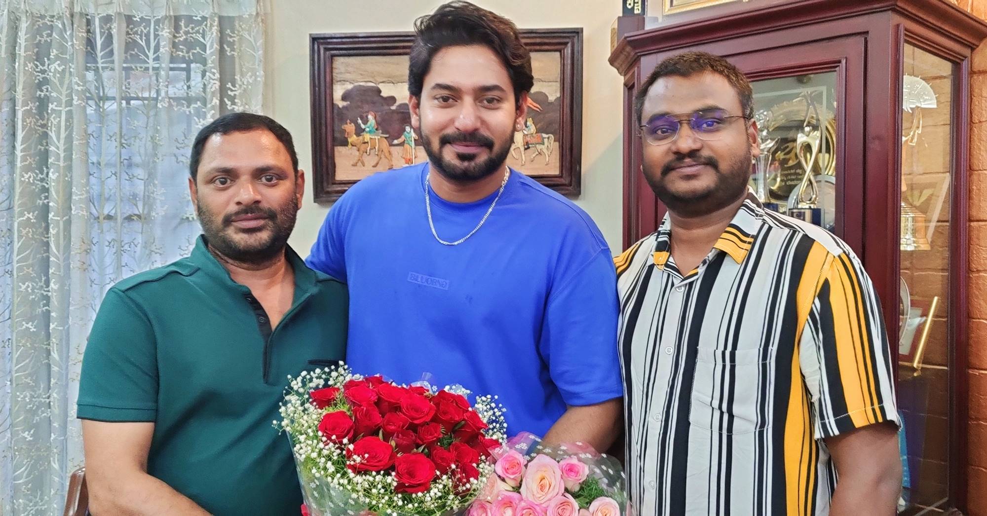 ನಟ ಪ್ರಜ್ವಲ್ ದೇವರಾಜ್ ಅವರಿಗೆ ಮಂಗಳವಾರ ಹುಟ್ಟುಹಬ್ಬದ ಸಂಭ್ರಮ, ಈ ಸಂದರ್ಭದಲ್ಲಿ ಅವರ ಅಭಿಮಾನಿಗಳು ತಮ್ನ ನೆಚ್ಚಿನ ಸ್ಟಾರ್ ನಟನ ಬರ್ತ್ ಡೇಗೆ ಶುಭಾಶಯ ಕೋರಿದ್ದಾರೆ. ಅದೇ ರೀತಿ ಪ್ರಜ್ವಲ್ ನಾಯಕನಾಗಿ ಅಭಿನಯಿಸುತ್ತಿರುವ, ಬಿಗ್ ಬಜೆಟ್ ನಲ್ಲಿ ನಿರ್ಮಾಣವಾಗುತ್ತಿರುವ ಪ್ಯಾನ್ ಇಂಡಿಯಾ ಚಿತ್ರ ‘ಜಾತರೆ’ಯ ನಿರ್ಮಾಪಕ ಗೋವರ್ಧನ್ ರೆಡ್ಡಿ ಹಾಗೂ ನಿರ್ದೇಶಕ ನಿರ್ದೇಶಕ ನಂದನವನಂ ಅವರು ಪ್ರಜ್ವಲ್ ಮನೆಗೆ ತೆರಳಿ ಹೂಗುಚ್ಛ ನೀಡಿ ಹುಟ್ಟುಹಬ್ಬಕ್ಕೆ ಶುಭ ಕೋರಿದ್ದಾರೆಕೋರಿದ್ದಾರೆ. ಈ ಚಿತ್ರದಲ್ಲಿ ಪ್ರಜ್ವಲ್ ಈವರೆಗೆ ಕಾಣಿಸಿಕೊಂಡಿರದ ವಿಭಿನ್ನ ಪಾತ್ರವನ್ನು ನಿರ್ವಹಿಸುತ್ತಿದ್ದಾರೆ. ಇತ್ತೀಚೆಗಷ್ಟೆ ಈ ಚಿತ್ರದ ಟೈಟಲ್ ಲಾಂಚ್ ಮಾಡಲಾಗಿತ್ತು. ಮುಂದಿನ ತಿಂಗಳು ಚಿತ್ರೀಕರಣ ಪ್ರಾರಂಭವಾಗಲಿದೆ.