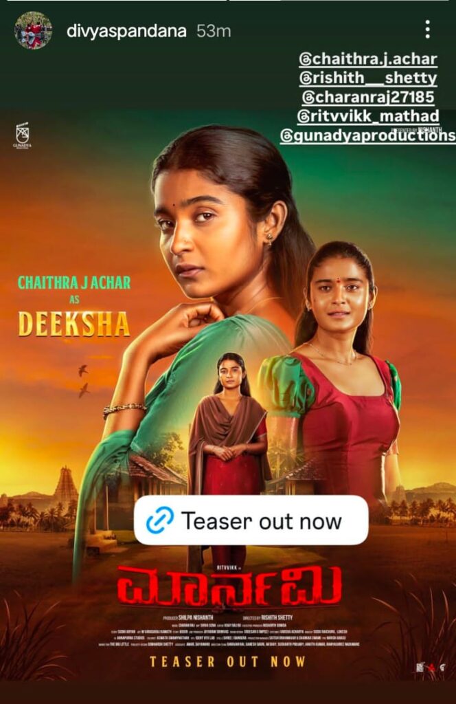 ‘ಮಾರ್ನಮಿ’ಗೆ ಮೋಹಕ ತಾರೆ ರಮ್ಯಾ ಸಾಥ್…ಚೈತ್ರಾ ಆಚಾರ್ ಪಾತ್ರ ಪರಿಚಯ