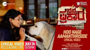 ಜಿ.ವಿ.ಕೆ ಕಂಬೈನ್ಸ್ ಬ್ಯಾನರ್ ಅಡಿಯಲ್ಲಿ ಗುರುರಾಜ್ ಎಸ್ ಅವರು ನಿರ್ಮಾಣ ಮಾಡಿರುವ `ನನ್ನ ಪ್ರಕಾರ’ ಚಿತಕ್ಕಾಗಿ ಕಿರಣ್ ಕಾವೇರಪ್ಪ ಅವರು ಬರೆದಿರುವ `ಹೂ ನಗೆ ಆಮಂತ್ರಿಸಿದೆ` ಎಂಬ ಹಾಡು ಜುಲೈ 24ರ ಬುಧವಾರ ಸಂಜೆ 5 ಗಂಟೆಗೆ ಜೀ ಮ್ಯೂಸಿಕ್ ಸೌತ್ ಮೂಲಕ ಬಿಡುಗಡೆಯಾಗಲಿದೆ.