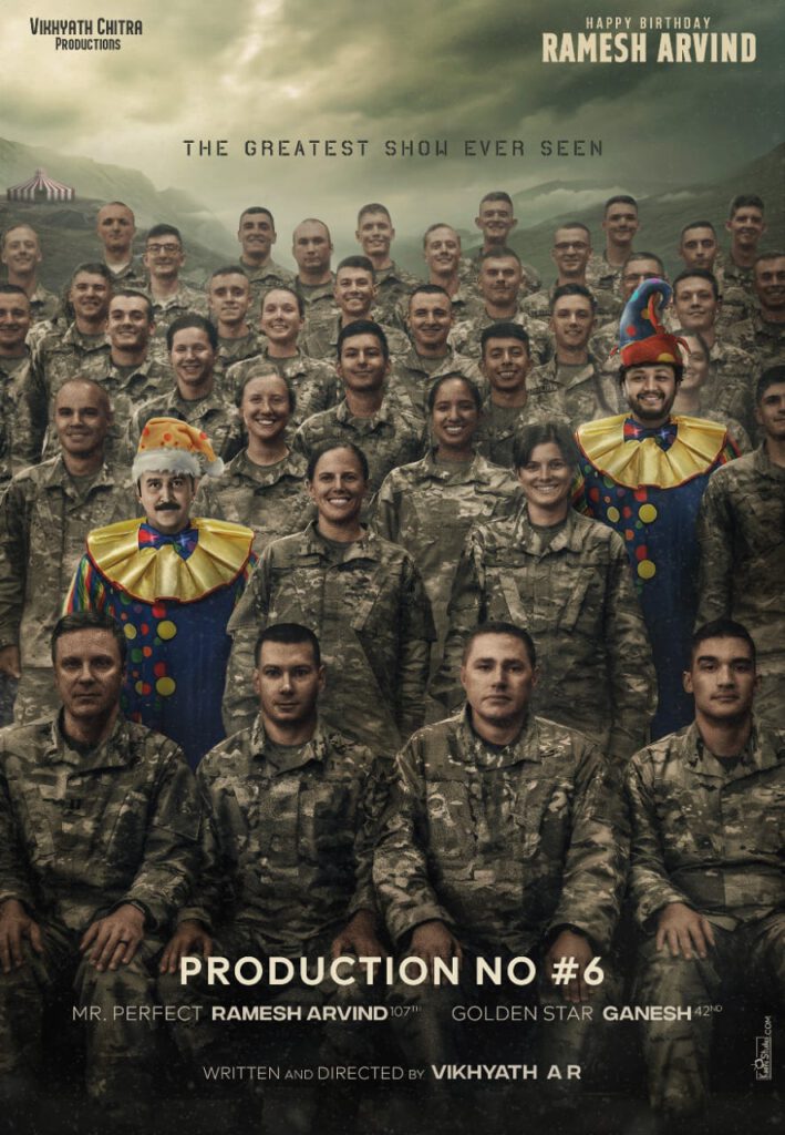 ಸ್ಟಾರ್ ನಟರಾದ ರಮೇಶ್ ಅರವಿಂದ್ ಹಾಗೂ ಗೋಲ್ಡನ್ ಸ್ಟಾರ್ ಗಣೇಶ್ ಇಬ್ಬರನ್ನೂ ನಾಯಕರನ್ನಾಗಿಟ್ಟುಕೊಂಡು ದೇಶ ಕಾಯುವ ವೀರಯೋಧರ ಕುರಿತಾಗಿ ಒಂದಷ್ಟು ಮಹತ್ವದ ವಿಚಾರಗಳನ್ನು ಹೇಳಲು ಹೊರಟಿದ್ದಾರೆ. ನಟ ರಮೇಶ್ ಅರವಿಂದ್ ಅವರ ಹುಟ್ಟುಹಬ್ಬದ ಪ್ರಯುಕ್ತ ಚಿತ್ರದ ಹೊಸ ಪೋಸ್ಟರನ್ನು ಬಿಡುಗಡೆ ಮಾಡಲಾಗಿದ್ದು, ಈ ಪೋಸ್ಟರ್ ಸಾಕಷ್ಟು ಕುತೂಹಲಗಳನ್ನು ಹುಟ್ಟುಹಾಕಿದೆ. ಇದರಲ್ಲಿ ವೀರ ಸೇನಾನಿಗಳ ನಡುವೆ ನಾಯಕರಿಬ್ಬರೂ ವಿದೂಷಕರ ಗೆಟಪ್ ನಲ್ಲಿ ಕಾಣಿಸಿಕೊಂಡಿದ್ದಾರೆ, ಈಗ ಉದ್ಭವಿಸಿರುವ ಎಲ್ಲಾ ಕುತೂಹಲಗಳಿಗೆ ನಿರ್ದೇಶಕನ ಕ್ಯಾಪ್ ತೊಟ್ಟಿರುವ ವಿಖ್ಯಾತ್ ಅವರೇ ಉತ್ತರ ನೀಡಬೇಕಿದೆ.