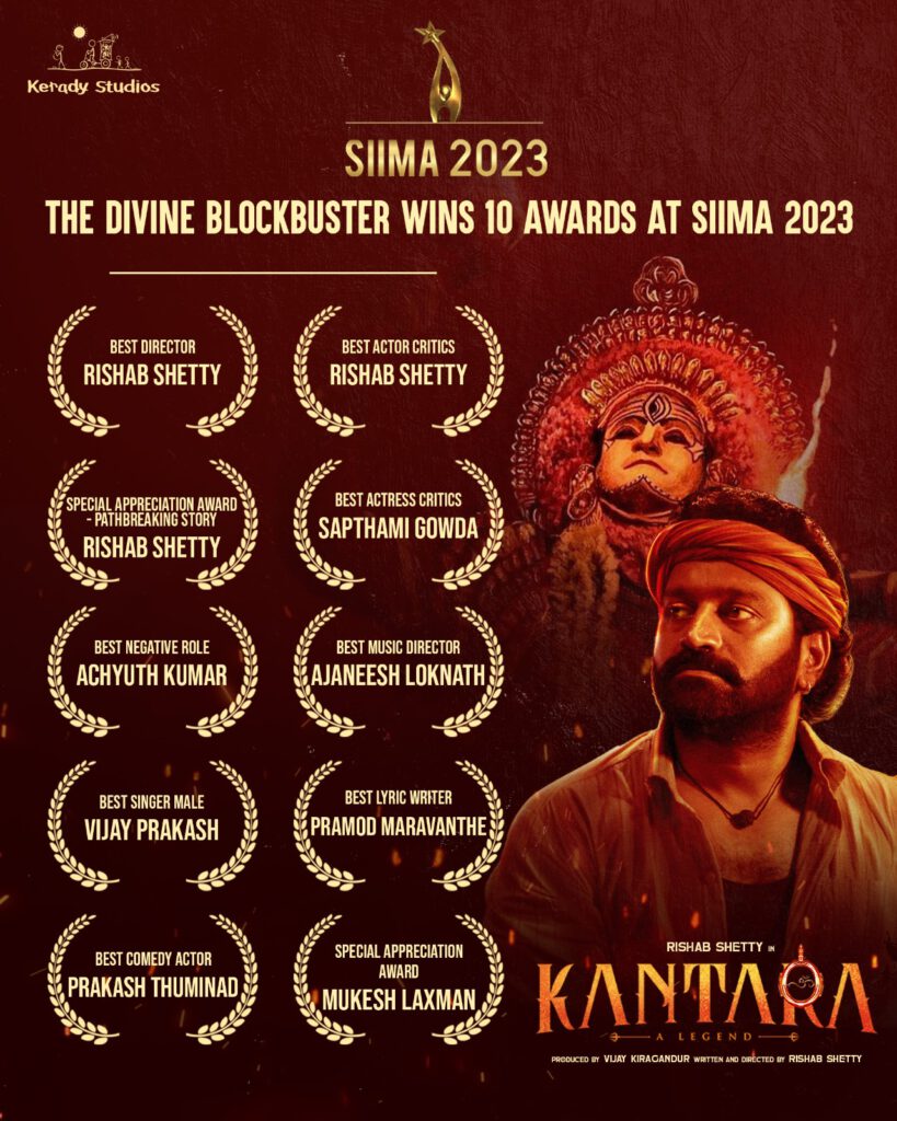 ಉಳಿದಂತೆ ಅತ್ಯುತ್ತಮ ನಟಿ, ಖಳನಟ, ಹಾಸ್ಯನಟ, ಸಂಗೀತ ನಿರ್ದೇಶಕ, ಗಾಯಕ, ಸಾಹಿತಿ ಸೇರಿದಂತೆ ಒಟ್ಟು ೧೦ ಅವಾರ್ಡ್ಸ್ ಕಾಂತಾರ ಸಿನಿಮಾ ಗೆದ್ದು ಸದ್ದು ಮಾಡಿದೆ. ಇದುವರೆಗೆ ಸೈಮಾ ಅವಾರ್ಡ್ಸ್ ನಲ್ಲಿ ಅತೀ ಹೆಚ್ಚು ಅವಾರ್ಡ್ ಗಳನ್ನು ಪಡೆದ ಚಿತ್ರ ಎಂಬ ಹೆಗ್ಗಳಿಕೆಗೆ ಕಾಂತಾರ ಪಾತ್ರವಾಗಿದೆ.