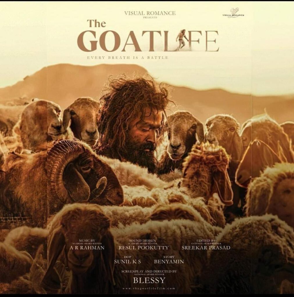ದಿ ಗೋಟ್ ಲೈಫ್ ಚಿತ್ರದಲ್ಲಿ ಸೂಪರ್ ಸ್ಟಾರ್ ಪೃಥ್ವಿರಾಜ್ ಸುಕುಮಾರನ್ ಮುಖ್ಯ ಪಾತ್ರದಲ್ಲಿ ಕಾಣಿಸಿಕೊಂಡಿದ್ದಾರೆ. ಬೆನ್ಯಾಮಿನ್ ಅವರ ಗೋಟ್ ಡೇಸ್ ಕಾದಂಬರಿ ಆಧರಿಸಿದ ಸಿನಿಮಾ ಇದಾಗಿದೆ. ಒಂದು ದಶಕದ ಪ್ರಯತ್ನದ ನಂತರ, ಮಲಯಾಳಂ ಸೂಪರ್ ಸ್ಟಾರ್ ಪೃಥ್ವಿರಾಜ್ ಸುಕುಮಾರನ್ ಅಭಿನಯದ ಈ ಸಿನಿಮಾ ನೈಜ ಕಥೆ ಆಧರಿಸಿದ ಚಿತ್ರವಾಗಿದೆ.