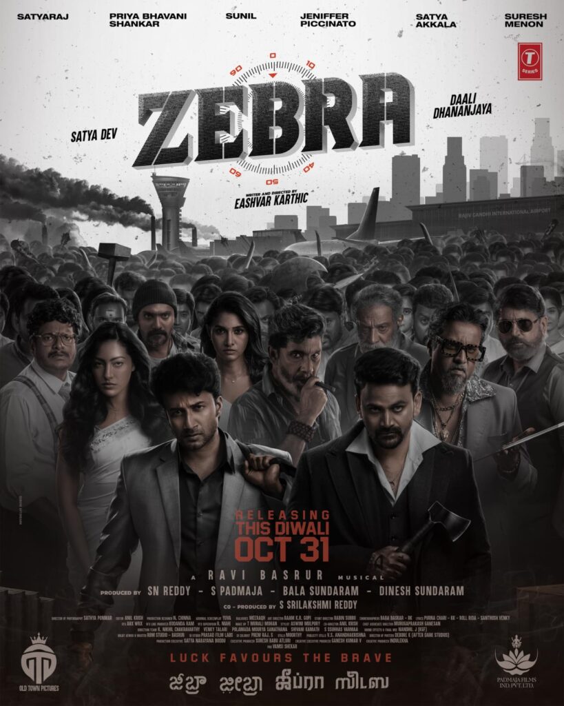 ಪದ್ಮಜಾ ಫಿಲಂಸ್ ಪ್ರೈವೇಟ್ ಲಿಮಿಟೆಡ್ ಮತ್ತು ಓಲ್ಡ್ ಟೌನ್ ಪಿಕ್ಚರ್ಸ್ ಬ್ಯಾನರ್‌ಗಳ ಅಡಿಯಲ್ಲಿ ಎಸ್‌ಎನ್ ರೆಡ್ಡಿ, ಎಸ್ ಪದ್ಮಜಾ, ಬಾಲ ಸುಂದರಂ ಮತ್ತು ದಿನೇಶ್ ಸುಂದರಂ ನಿರ್ಮಾಣ ಮಾಡಲಾಗಿದೆ. ಕೆಜಿಎಫ್ ಮತ್ತು ಸಲಾರ್ ಖ್ಯಾತಿಯ ರವಿ ಬಸ್ರೂರ್ ಚಿತ್ರಕ್ಕೆ ಸಂಗೀತ ನೀಡಿದ್ದು, ಸತ್ಯ ಪೊನ್ಮಾರ್ ಅವರ ಛಾಯಾಗ್ರಹಣವಿದೆ. ಎಸ್ ಶ್ರೀಲಕ್ಷ್ಮಿ ರೆಡ್ಡಿ ಸಹ ನಿರ್ಮಾಪಕಿ. ಅನಿಲ್ ಕ್ರಿಶ್ ಸಂಕಲನ,ಮೀರಾಖ್ ಸಂಭಾಷಣೆ ಇದೆ. ಅಶ್ವಿನಿ ಮುಲ್ಪುರಿ, ಗಂಗಾಧರ ಬೊಮ್ಮರಾಜು ಕಾಸ್ಟ್ಯೂಮ್ ಡಿಸೈನರ್ ಆಗಿ ದುಡಿದಿದ್ದಾರೆ. ಮೋಷನ್ ಪೋಸ್ಟರ್ ಜೊತೆಗೆ ಚಿತ್ರತಂಡ ಬಿಡುಗಡೆ ದಿನಾಂಕ ಕೂಡ ಘೋಷಣೆ ಮಾಡಿದೆ. ಬೆಳಕಿನ ಹಬ್ಬ ದೀಪಾವಳಿಗೆ ಜೀಬ್ರಾ ತೆರೆಗೆ ಬರಲಿದೆ.
